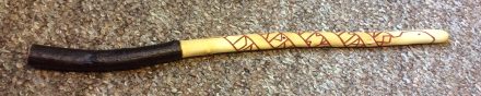 Eirik can also make more elaborate custom orders, such as this coiled serpent elder futhark rune wand: